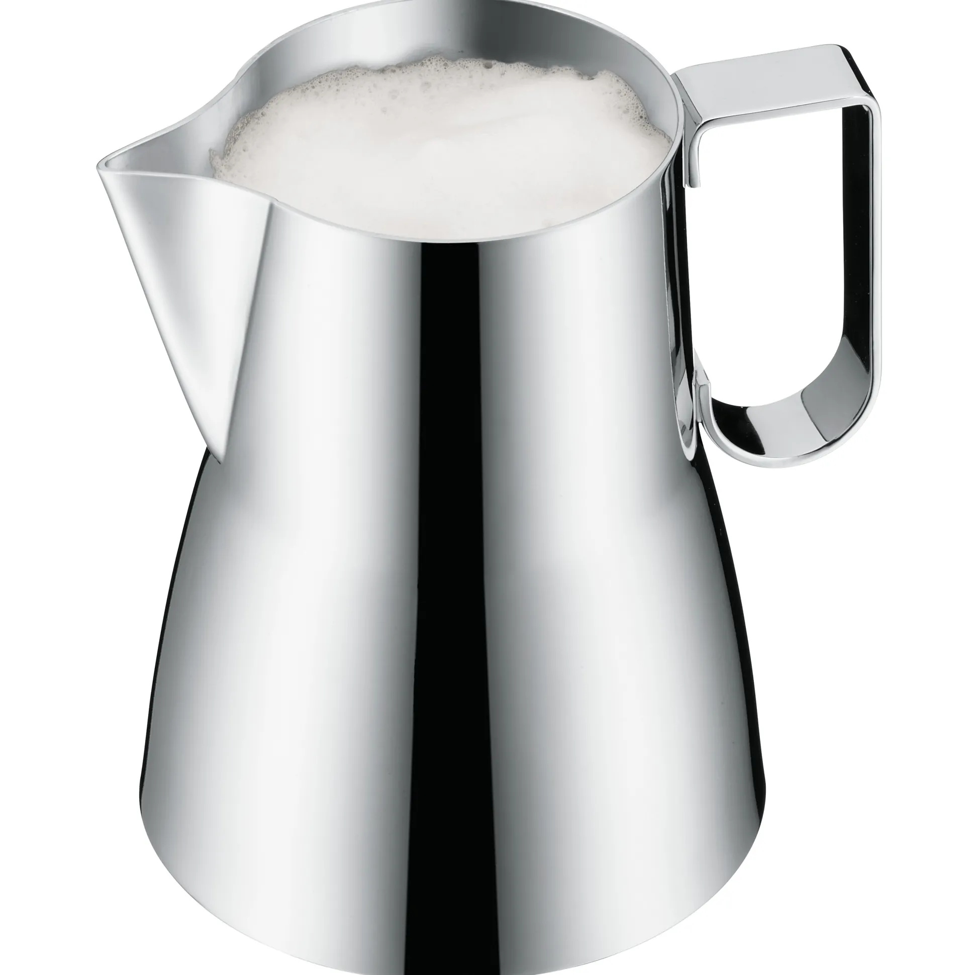 Der spitz zulaufende Ausgießer erleichtert das Ausgießen des Milchschaums direkt in die Tasse.
