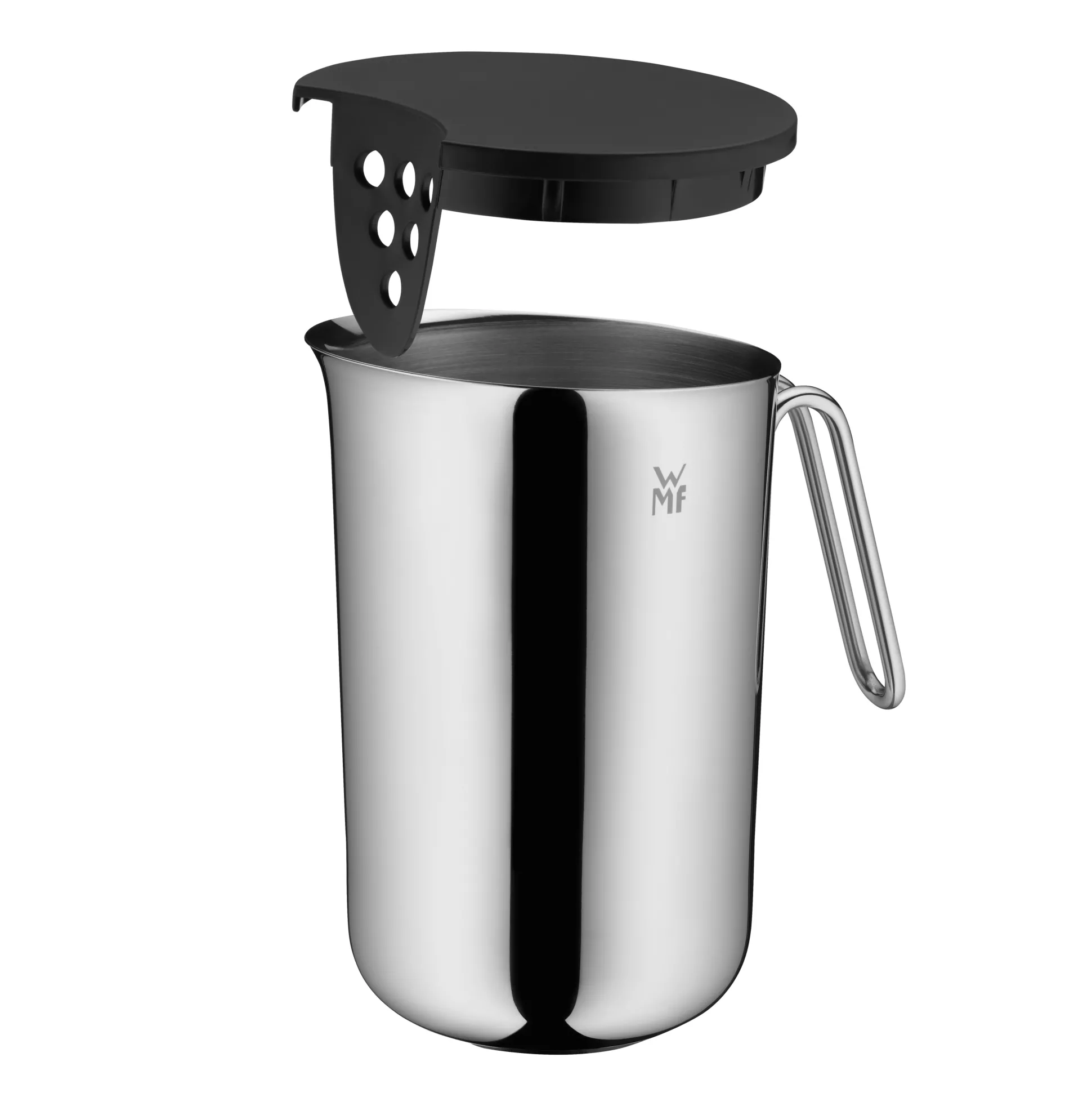 WMF interpretiert die klassische Rührschüssel aus Edelstahl neu und verleiht ihr einen ultra-praktischen Touch: Von Suppen über Smoothies bis hin zu leckeren selbstgemachten Pürees ist die Function Bowls Rührschüssel von WMF dank ihrer Form und Höhe perfekt für die Verwendung mit einem Stabmixer geeignet. Zudem bietet sie tropffreies Ausgießen für eine saubere Küche sowie einen komfortablen Griff, der für sicheren Halt sorgt, während sich mit Innenskalierung präzise abmessen lässt. Zusätzlich enthalten ist ein loser Deckel mit integriertem Sieb zum einfachen Aussieben von großen Stücken. Diese robuste Edelstahlschüssel aus hochwertigem Cromargan® ist außen poliert und innen mattiert sowie spülmaschinengeeignet für eine mühelose Reinigung.