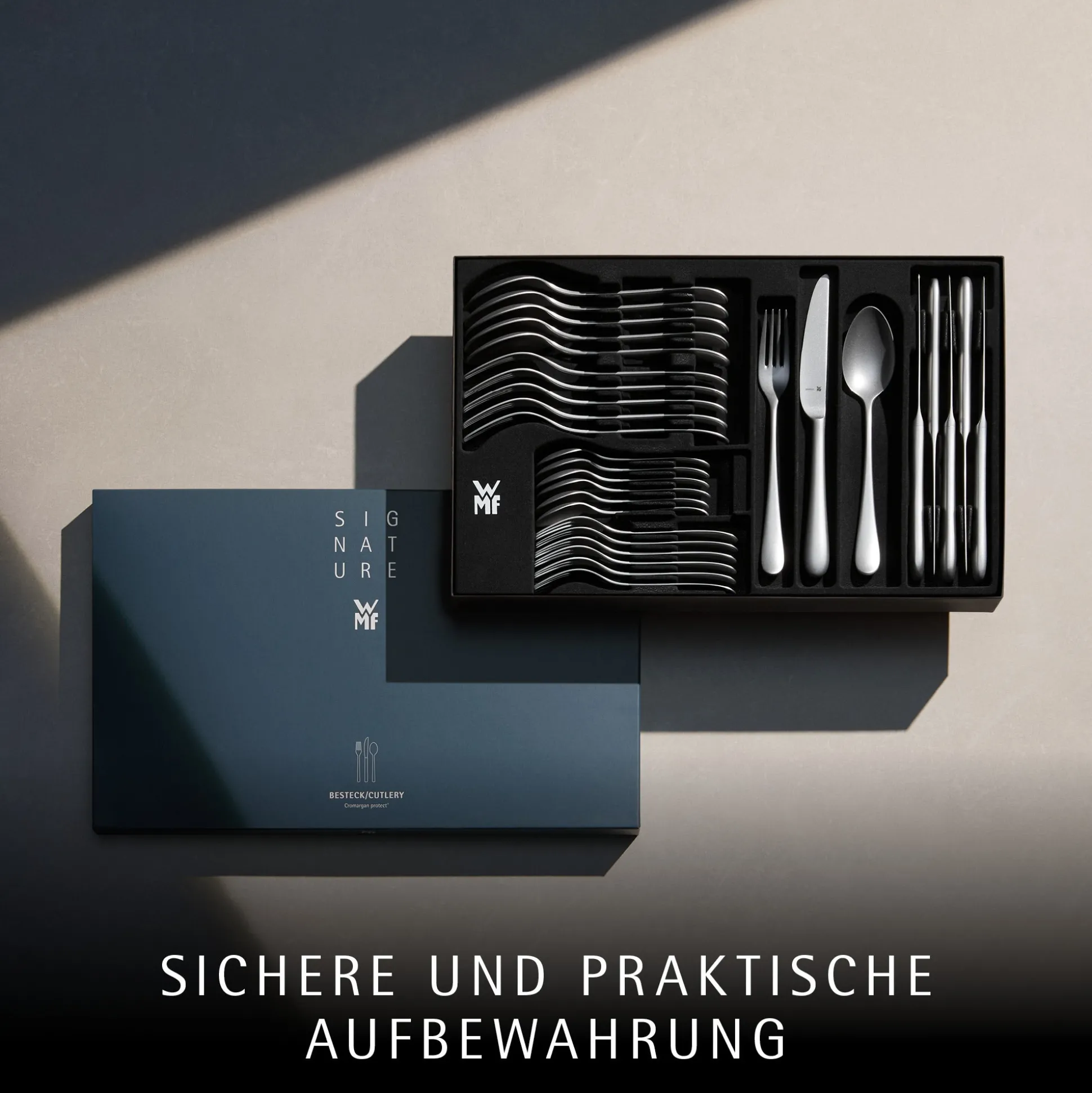 Das Besteck-Set wird in einem hochwertigen Besteckkasten geliefert, der eine sichere und praktische Aufbewahrung ermöglicht.