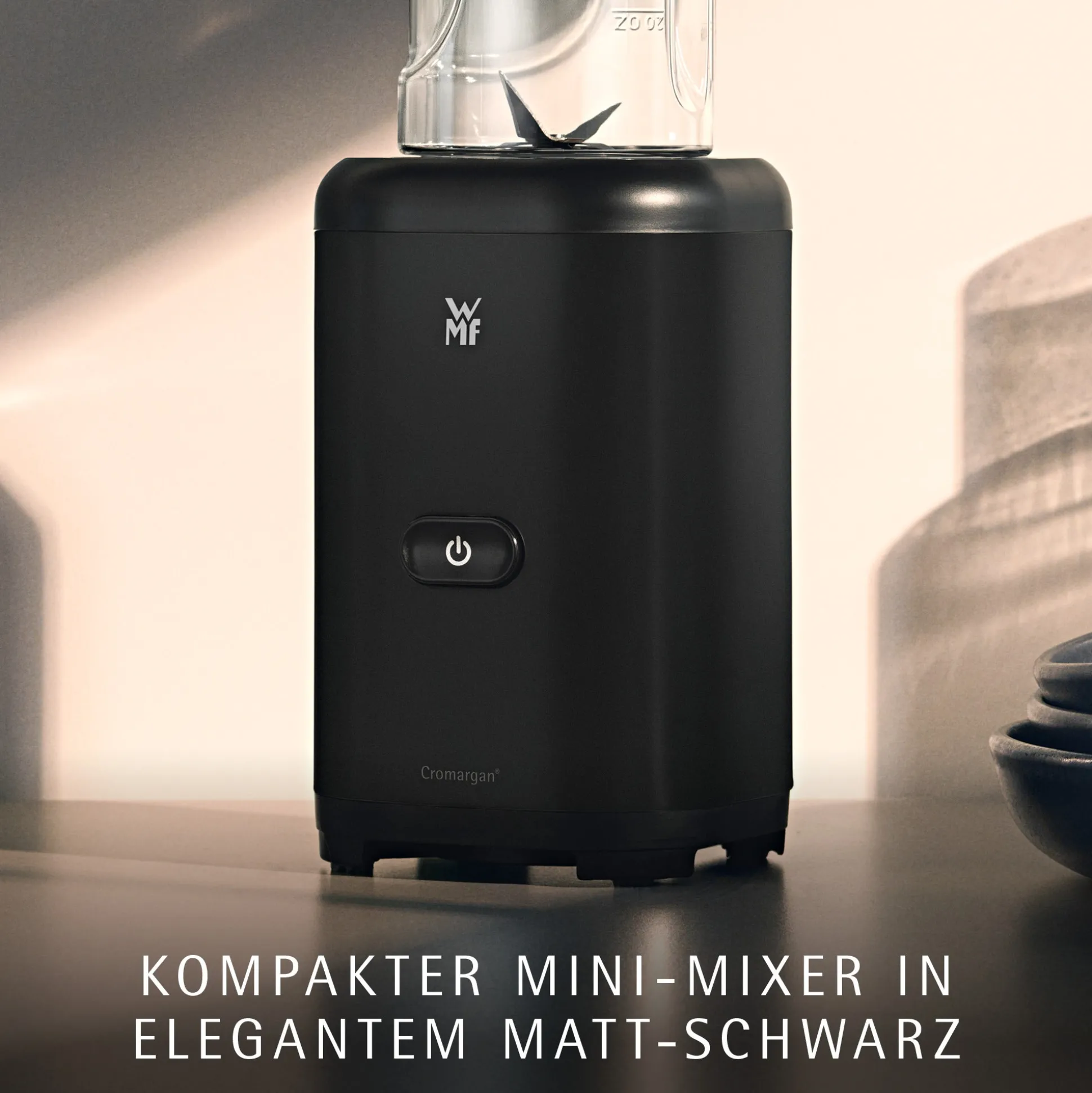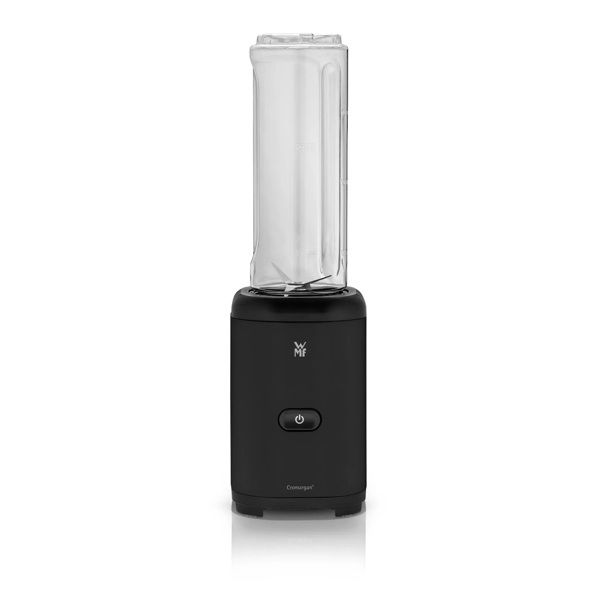 Dieser kompakte Mini-Mixer aus robustem, elegantem Cromargan® mit matt schwarzer Oberfläche zaubert frische und leckere Smoothies für unterwegs.