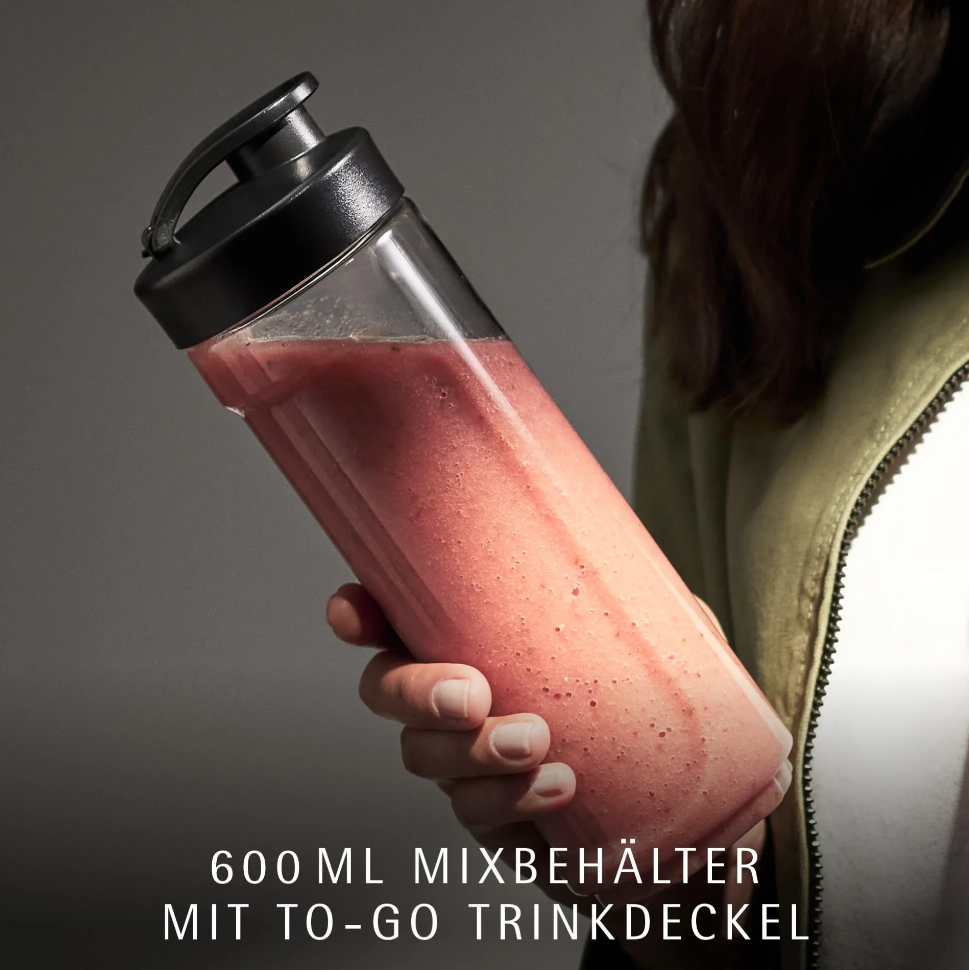 - 1 Mixbehälter/ To-Go-Trinkflasche (600 ml)