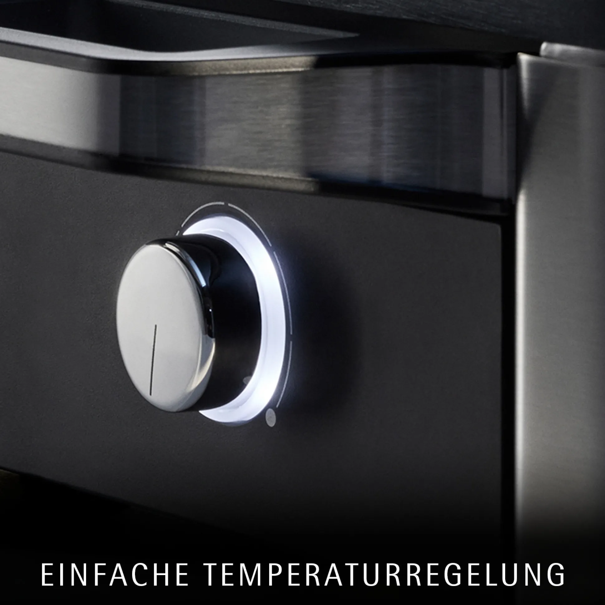 Mit dem stufenlos einstellbaren Temperaturregler und der LED-Anzeige behalten Sie stets die volle Kontrolle – für perfekte Ergebnisse bei jedem Gericht.