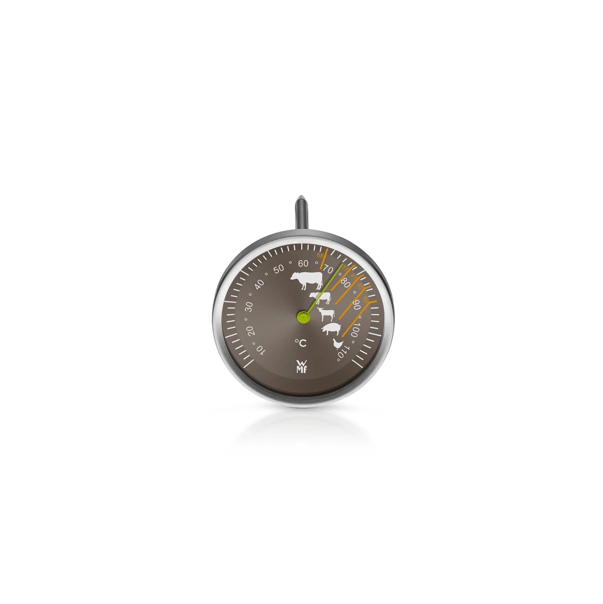 Vom Sonntagsbraten bis zum saftigen Steak ist die Zubereitung von perfektem, auf den Punkt gegartem Fleisch mit dem Bratenthermometer von WMF denkbar einfach. Ob im Backofen, auf dem Herd oder Grill: Rind-, Kalb-, Lamm-, Schweine- und Geflügelfleisch lassen sich jedes Mal gekonnt präzise garen. Die leicht ablesbaren Illustrationen zeigen für jede Fleischsorte zuverlässig an, wenn die empfohlene Mindesttemperatur erreicht ist; für absolut sichere, optimale Ergebnisse. Um die Zubereitung zu vereinfachen, kann das Thermometer sogar während des gesamten Garvorgangs im Fleisch verbleiben. Das WMF Bratenthermometer ist hitzebeständig bis 250 °C und somit backofengeeignet. Es misst die Kerntemperaturen des jeweiligen Garguts im Bereich von 10 °C bis 110 °C. Der Dorn und das Gehäuse dieses hochwertigen Fleischthermometers sind aus langlebigem, hygienischem und geschmacksneutralem Cromargan®: Edelstahl Rostfrei 18/10.