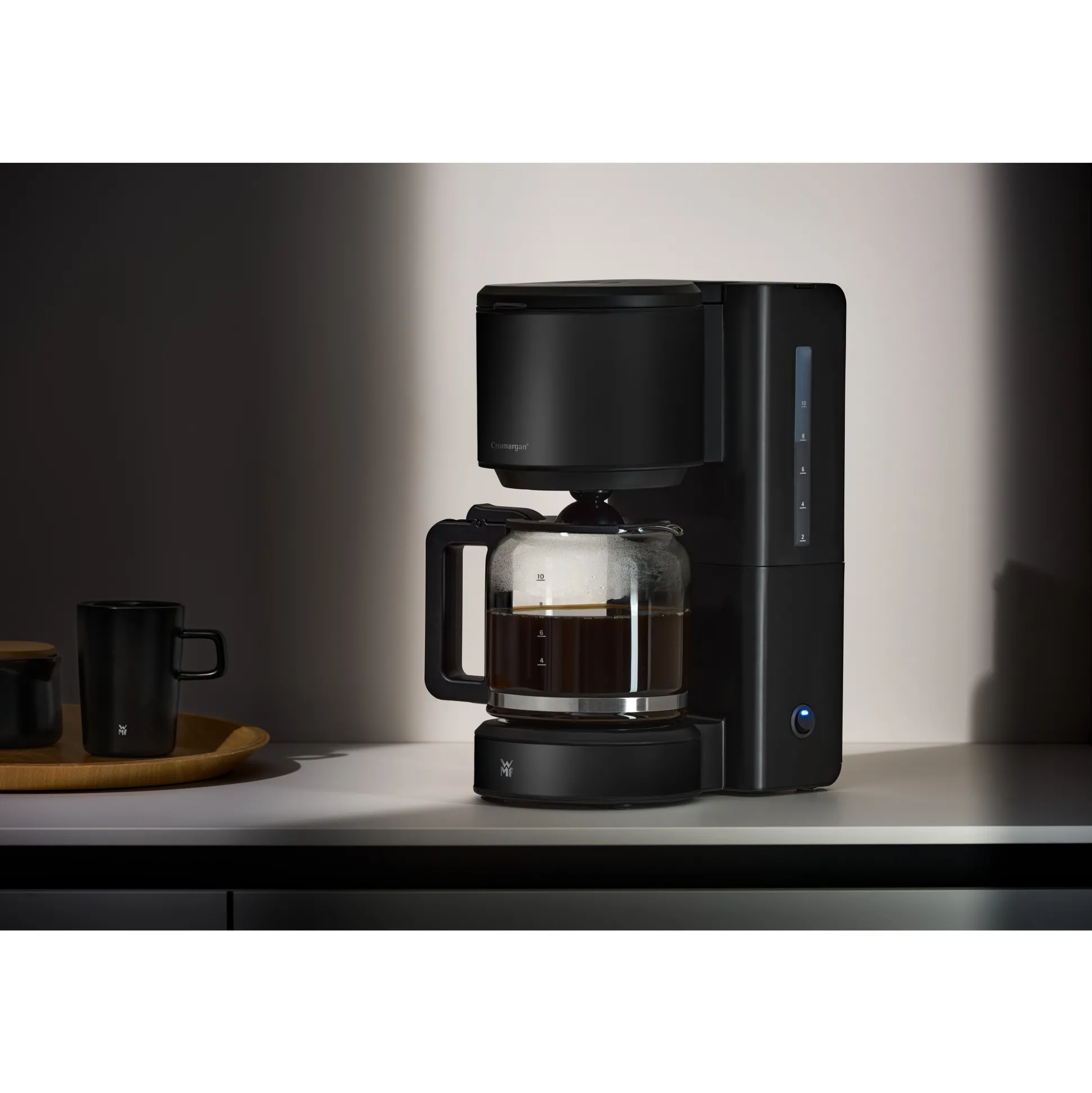 Die perfekte Mischung von Stil, Langlebigkeit und Aroma: Die WMF Stelio Filterkaffeemaschine kommt im schlichten, doch eleganten Design aus hochwertigem, stilvollen matten Cromargan®: Edelstahl daher. Die hochwertige Glaskanne stellt sicher, dass Geschmack und Aroma Ihres Kaffees Tag für Tag rein bleiben. Das smarte Design sorgt für eine bequeme und einfache Handhabung. Dank externer Wasserstandsanzeige sowie abnehmbarem Filtereinsatz ist die Kaffeezubereitung besonders einfach. Die Aromakanne aus Glas für bis zu 10 Tassen heißen und köstlichen Kaffee, bewahrt den ganzen Geschmack und das volle Aroma: So beginnt ein wundervoller Tag mit dem perfekten Kaffee. Dank des Tropf-Stopp-Systems können Sie Ihre erste Tasse bereits während des Brühvorgangs servieren, während Sie sich ganz auf den Überlaufschutz verlassen können. Diese erweiterten Funktionen werden ergänzt durch die Langlebigkeit des hochwertigen Cromargan®: Edelstahlgehäuses – für eine langanhaltende Leistung im eleganten Matt-Look.